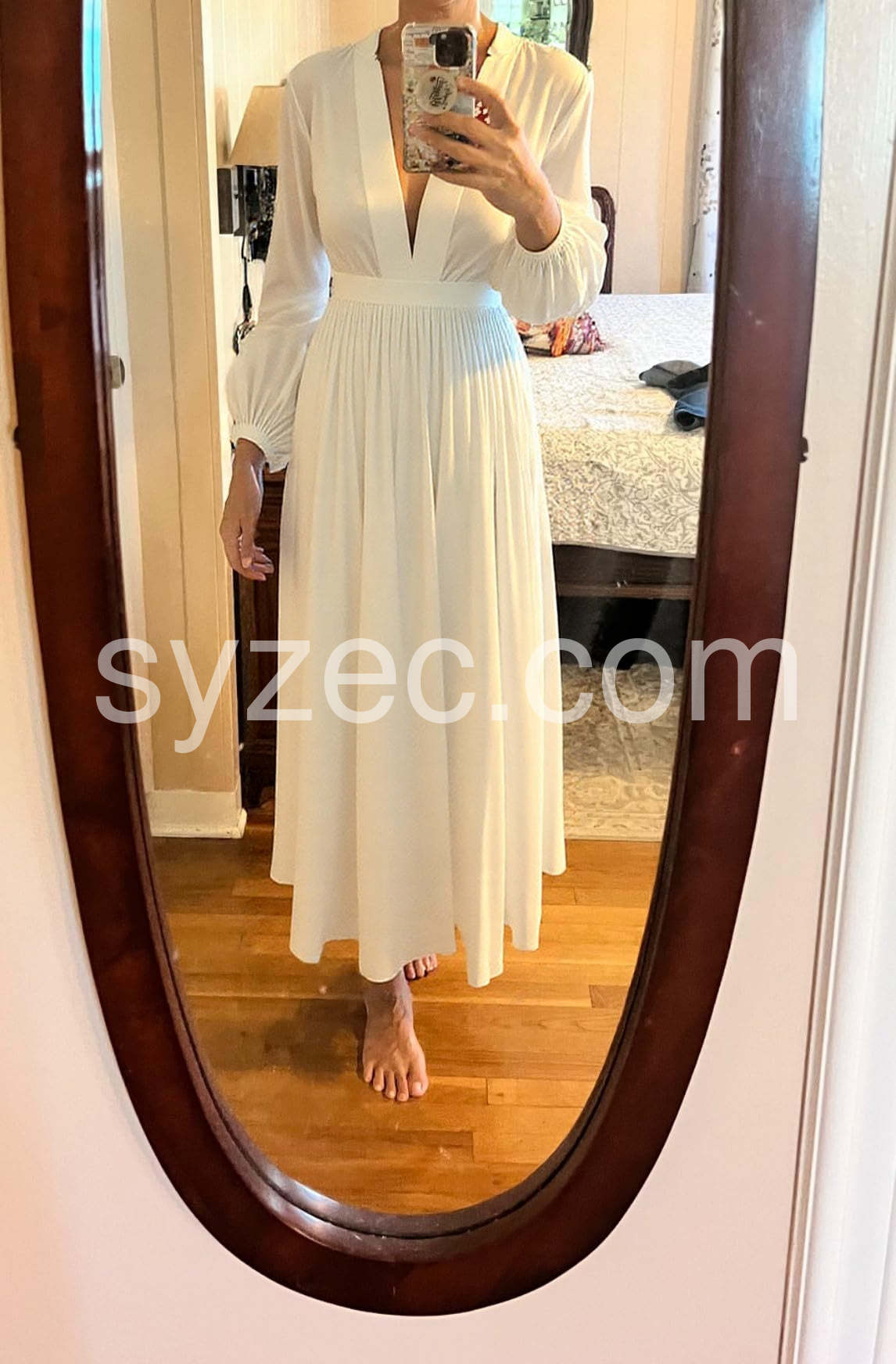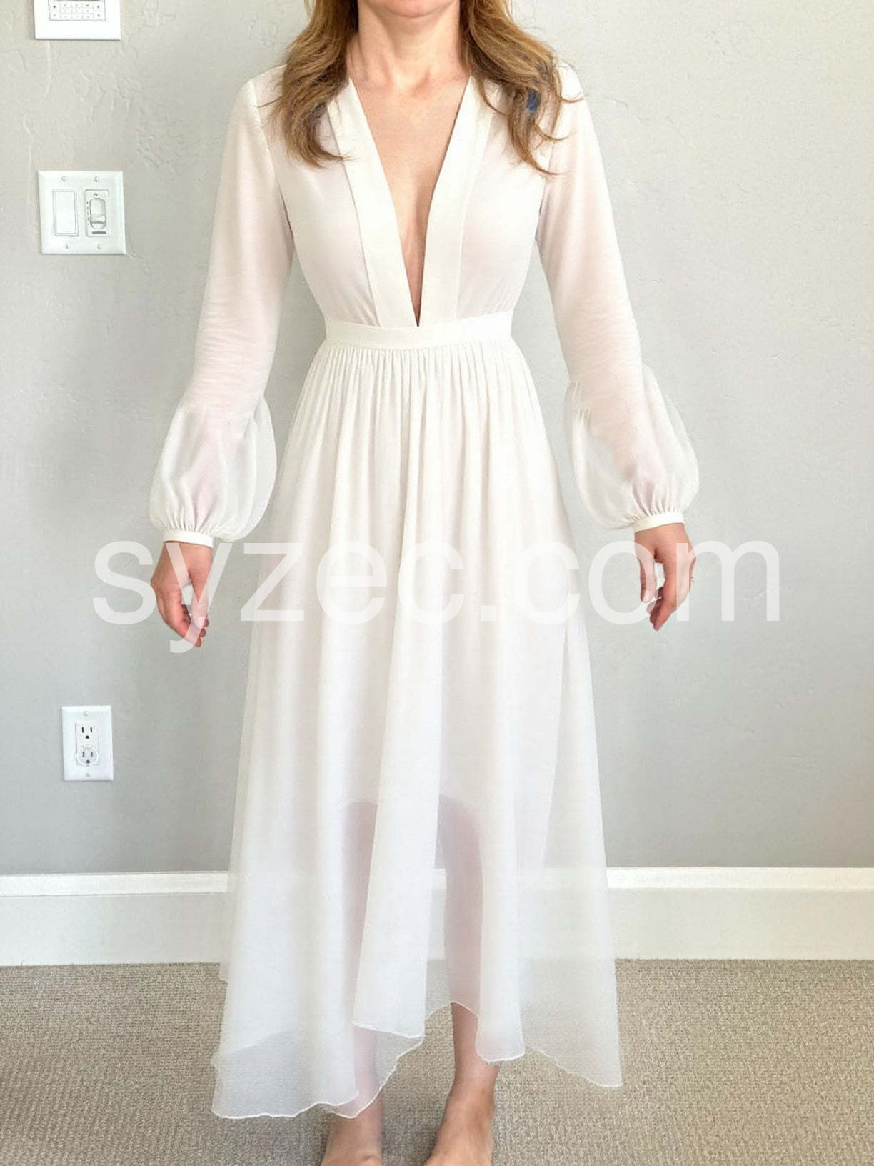 Vintage Plain White V-Neck Maxi Dress
